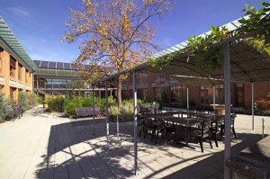 Duftende und farbenfroh blühende Pflanzen, Thementische mit Pflanzen und Materialien zum ‚Begreifen’, ein plätschernder und sich bewegender Brunnen sind nur einige der Elemente die den Raum für einen erfüllten Lebensabend bieten.