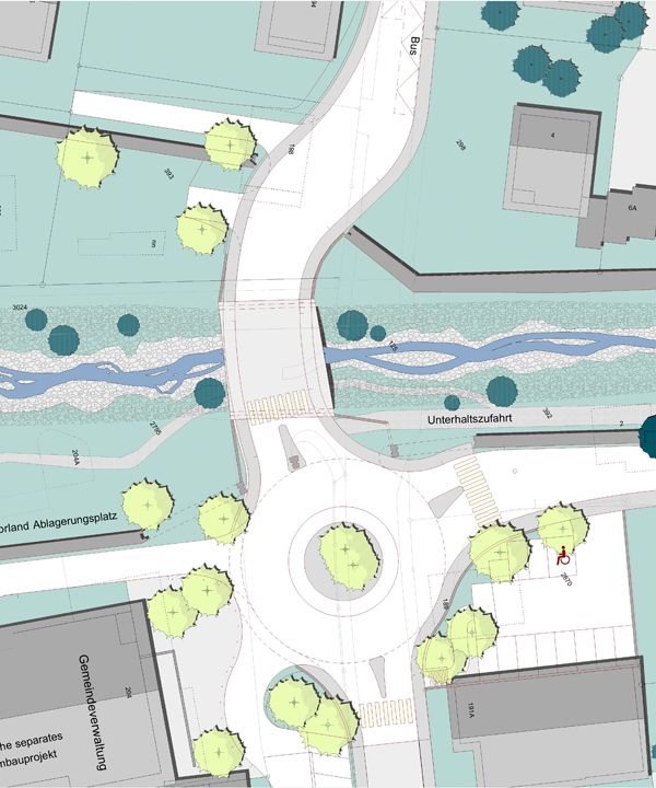 Der Glyssibach und sein Gewässerraum sollen nicht als trennendes Element in der Siedlung verstanden werden, sondern als integrierter Naturraum mit all seinen negativen und positiven Eigenschaften.